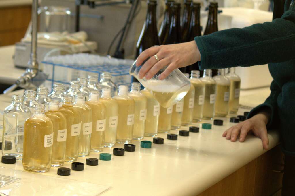 As this stage our wine is ready to use for finishing trials. This is where we evaluate dosage, or level of sweetness, to know how much liqueur d’expédition (mixture of wine and sugar) to use to strike the right balance between acidity and sweetness. For our sparkling Brut Cuvée we purposely select grapes with high concentration of acidity for better aging potential. That means we need to balance this racing acidity with a small amount of sugar at dosage.